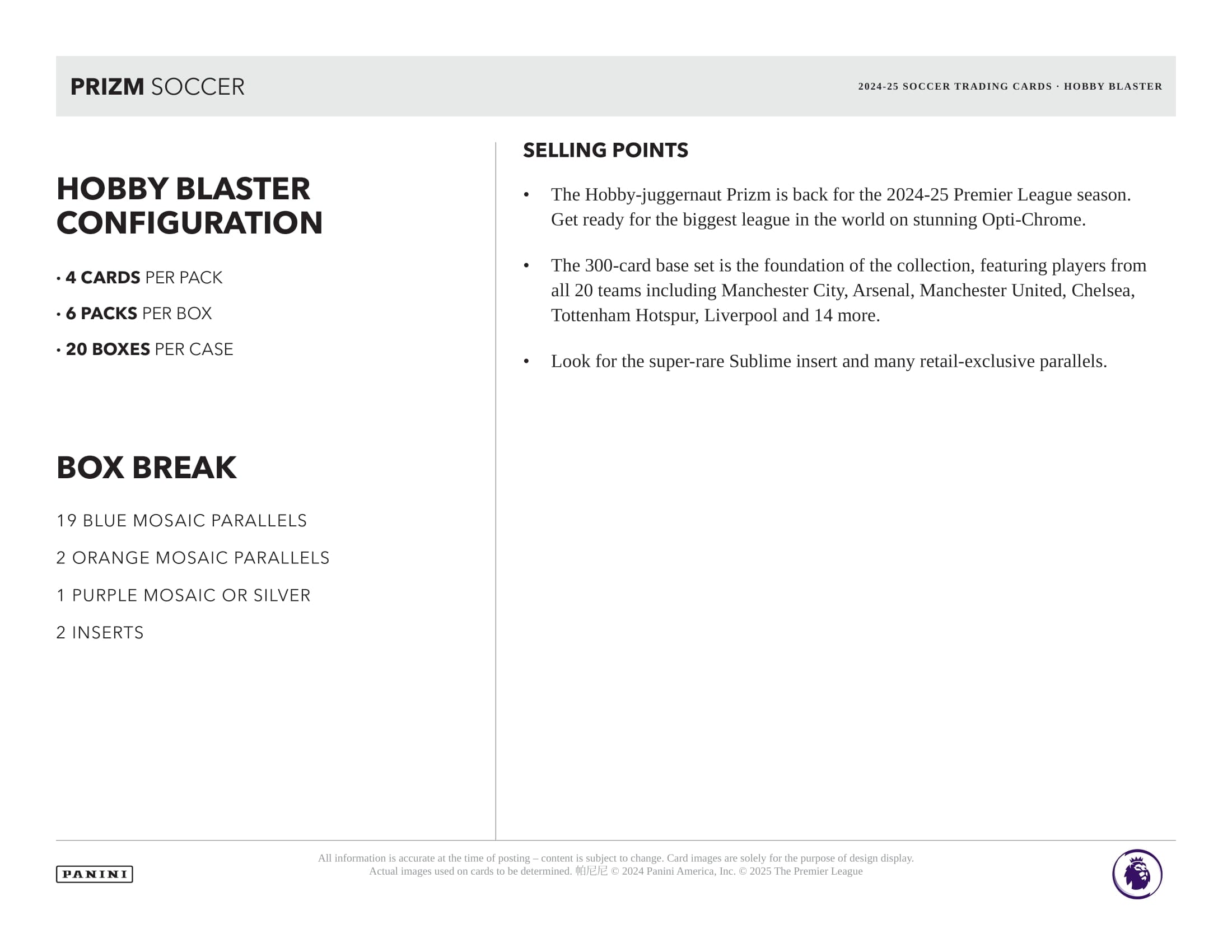 The Hobby-juggernaut Prizm is back for the 2024-25 Premier League season. Get ready for the biggest league in the world on stunning Opti-Chrome.